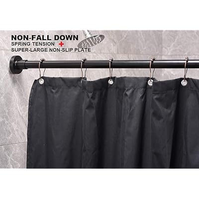 Interdesign Wall Mount Curved Bathroom Shower Curtain Rod 41 72 Matte Black Shower Curtains Hooks Liners Amazon Com Au from images-na.ssl-images-amazon.com Aluminum adjustable tension shower rod in matte black. This is a large and extendable shower rod that comes in a matte finish. Manufacturers and suppliers from this trusted online store. This shower rod is constructed from steel thus contributing to its durability. It features an easy to install design that requires no hardware and only a minute or two of your time. This strong pole will not bend, even when supporting your heaviest curtain. Glossy metallics provide a contemporary aesthetic, while bronze options add a vintage vibe. Shower curtain ring allows you to separate the decorative curtain from the shower liner.