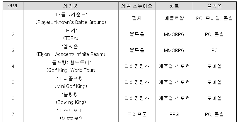 전 bluehole inc.)은 2007년 3월 대한민국 성남시 분당구에 설립된 게임 개발사이다.